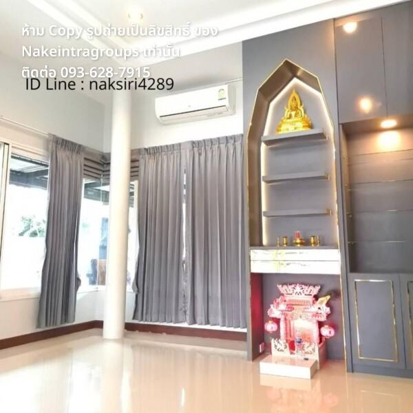 ขายบ้านเดี่ยว 3 ห้องนอน 2 ห้องน้ำ 2 จอดรถ บ้านมุมติดสวน พื้นที่ 76.9 ตร.วา ความกว้างตัวบ้าน 10 ม. แอร์ 4 เครื่อง